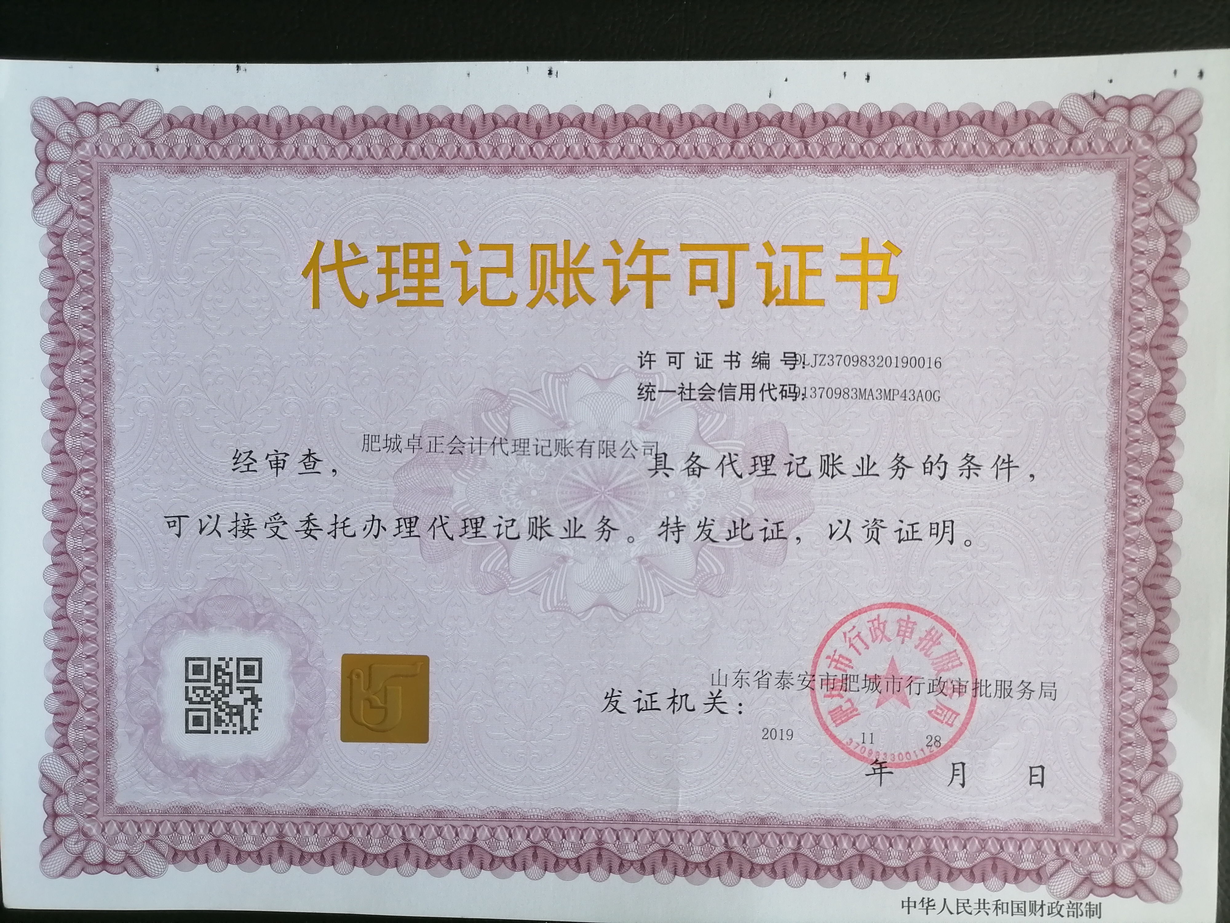 肥城卓正企業(yè)管理咨詢有限公司 是經(jīng)財政局備案,泰安財政局批準設立的代理記賬機構。公司經(jīng)營范圍:專業(yè)代理記賬、會計報表、報稅;審計、貸款資料;專業(yè)代理清理公司亂帳;專業(yè)代理商標注冊、公司注冊、注銷、變更;專業(yè)代辦進出口貿(mào)易許可證。